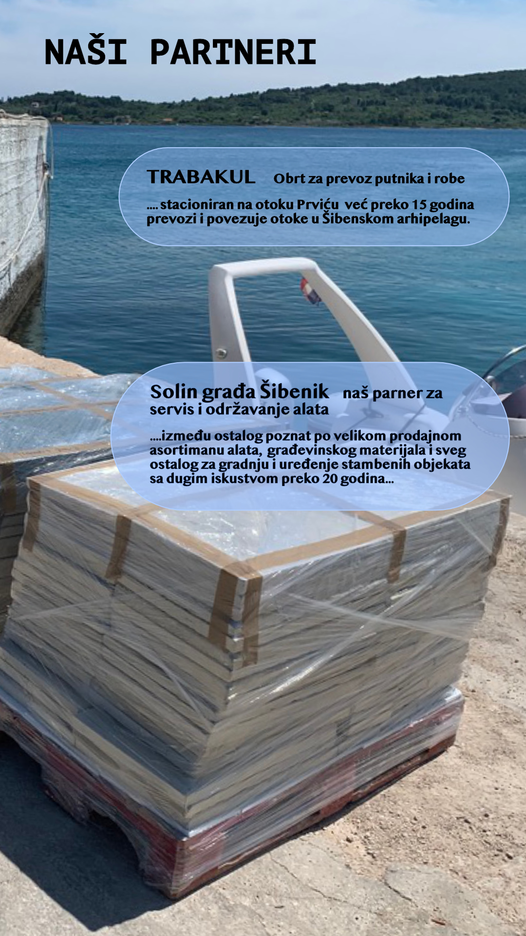 - Usluga brze dostave ili prevoza robe na otoke u Šibenskom arhipelagu do 500kg po jednoj vožnji = 50€1h